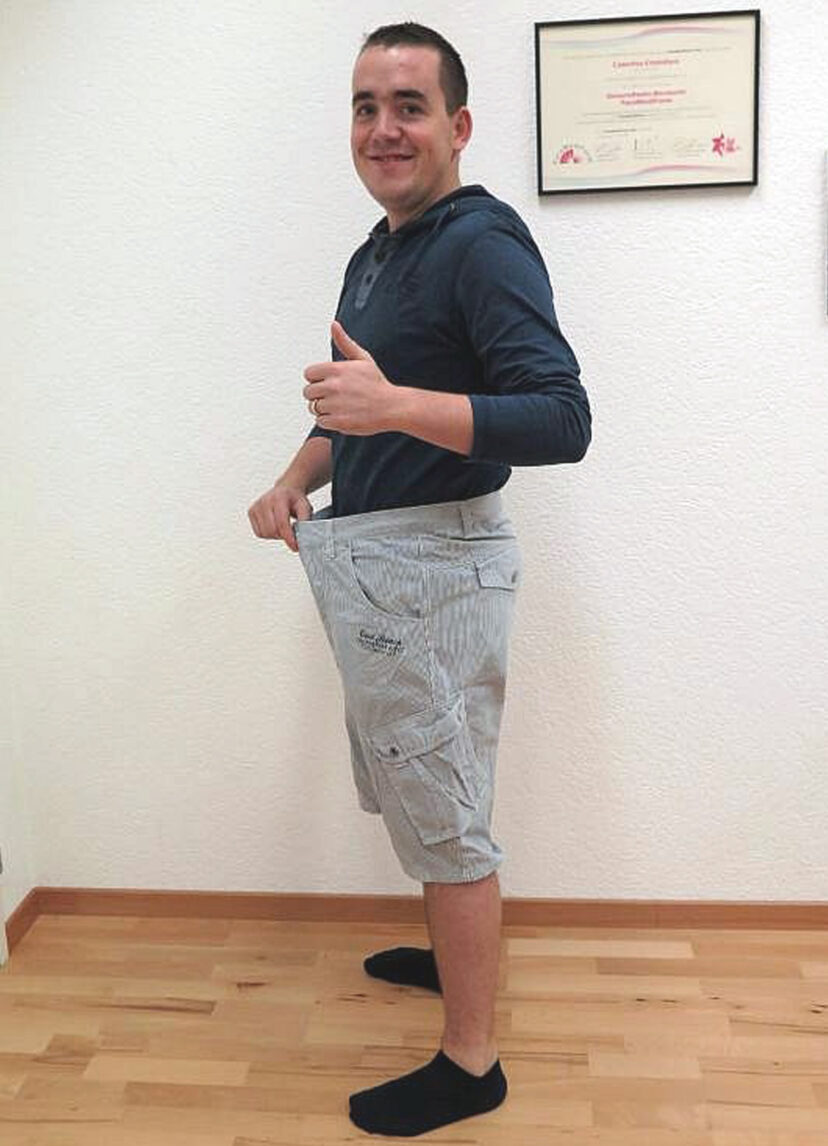 *Hinweis: Bei den Fotos handelt es sich um Originalaufnahmen. Die dargestellten Gewichtsabnahmen sind individuelle Ergebnisse und können im Einzelfall nicht garantiert werden. In einem persönlichen Erstgespräch mit Anamnese können wir Ihnen sagen, in welcher Zeit Sie Ihr Wohlfühlgewicht erreichen können.